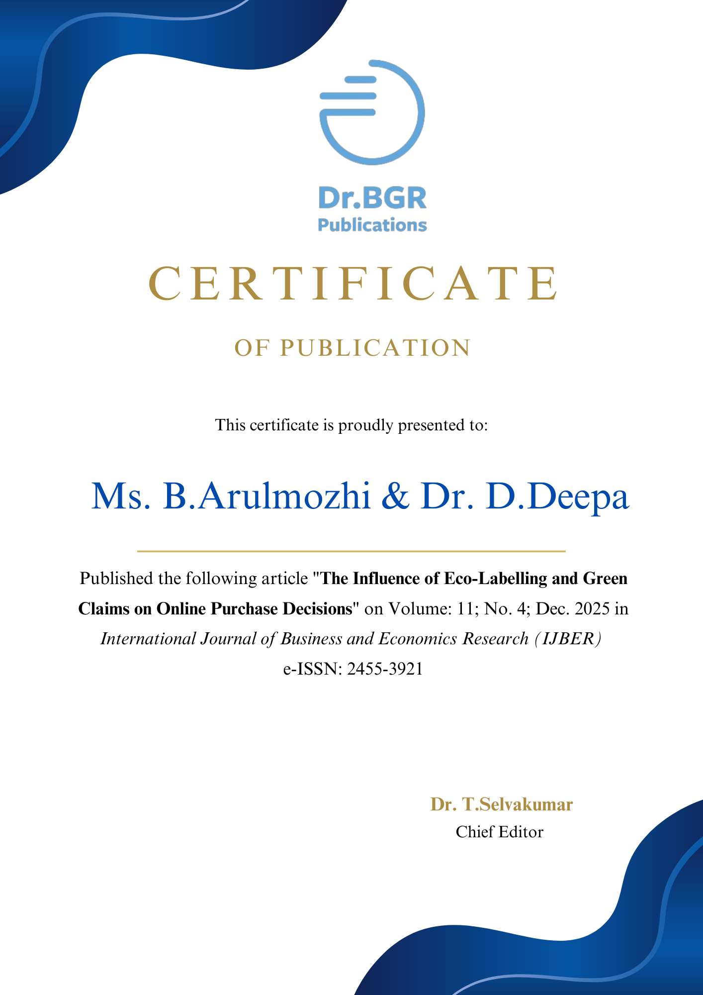 B.Arulmozhi and D.Deepa, The Influence of Eco-Labelling and Green Claims on Online Purchase Decisions, International Journal of Business and Economics Research (IJBER) e-ISSN: 2455-3921; 11.4 (2025): 56 – 63