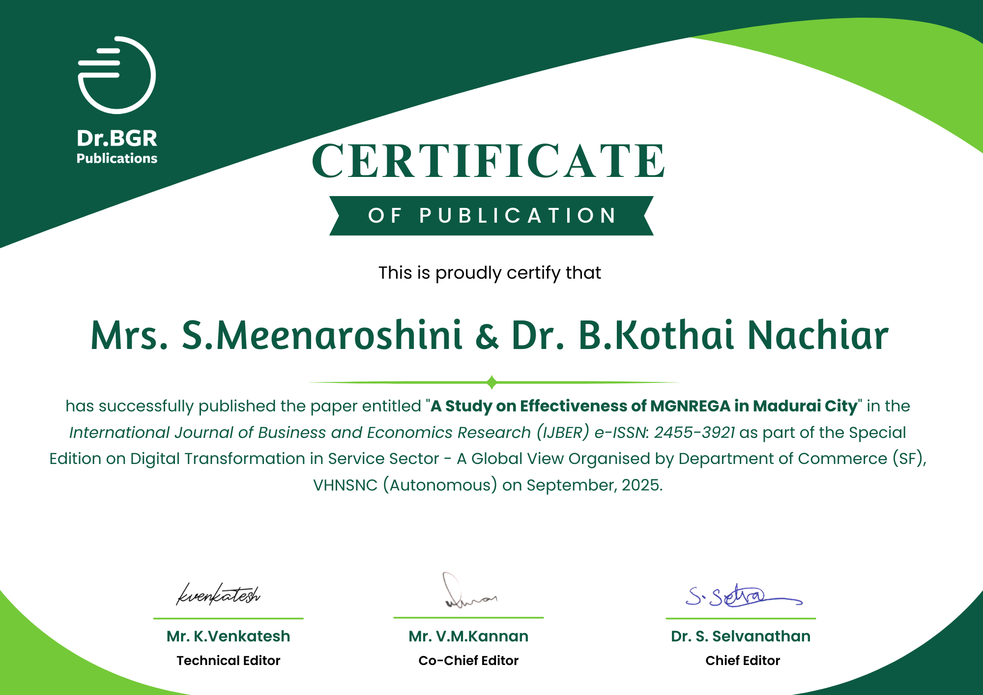 18. | NC 095 | A Study on Effectiveness of MGNREGA in Madurai City