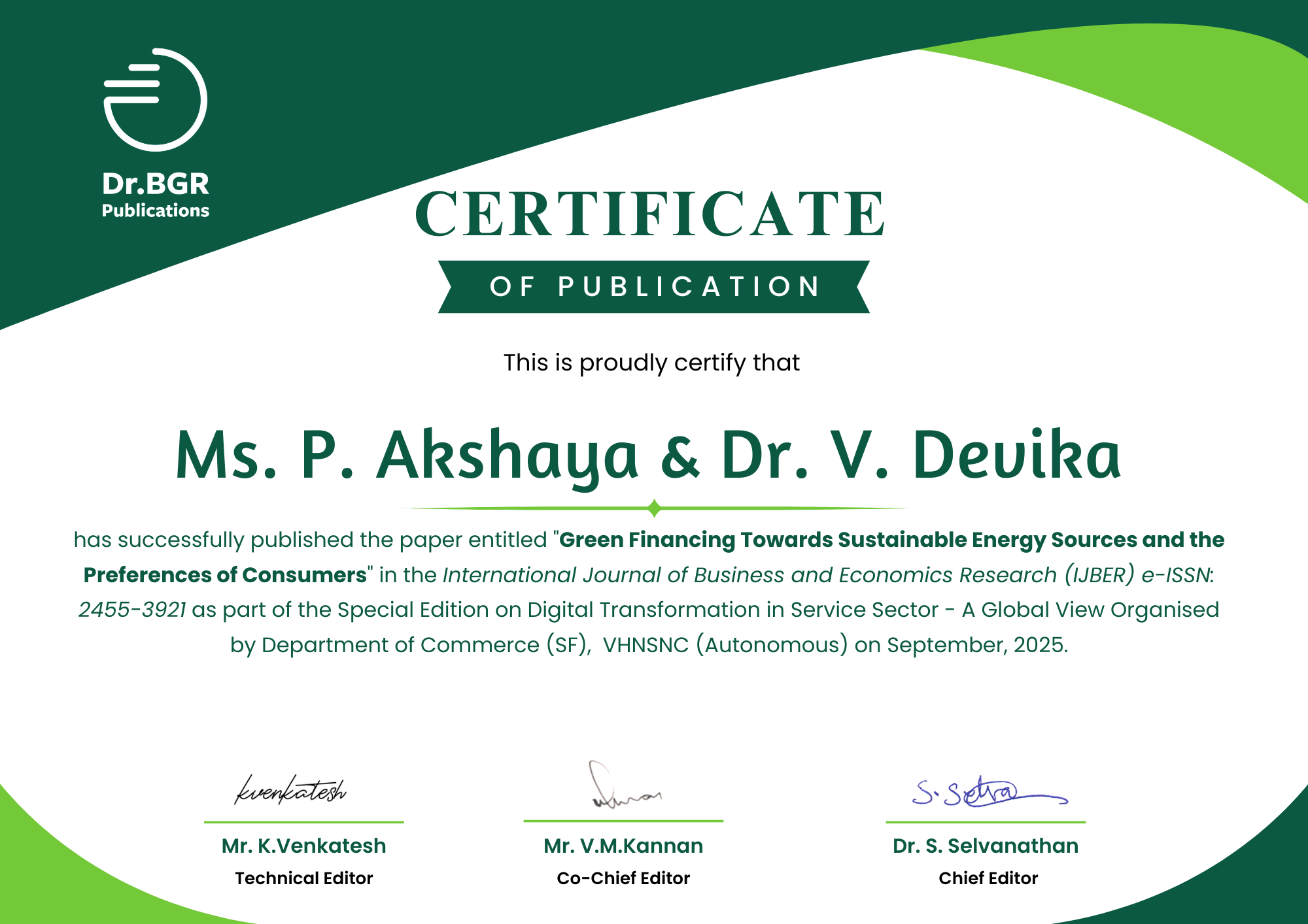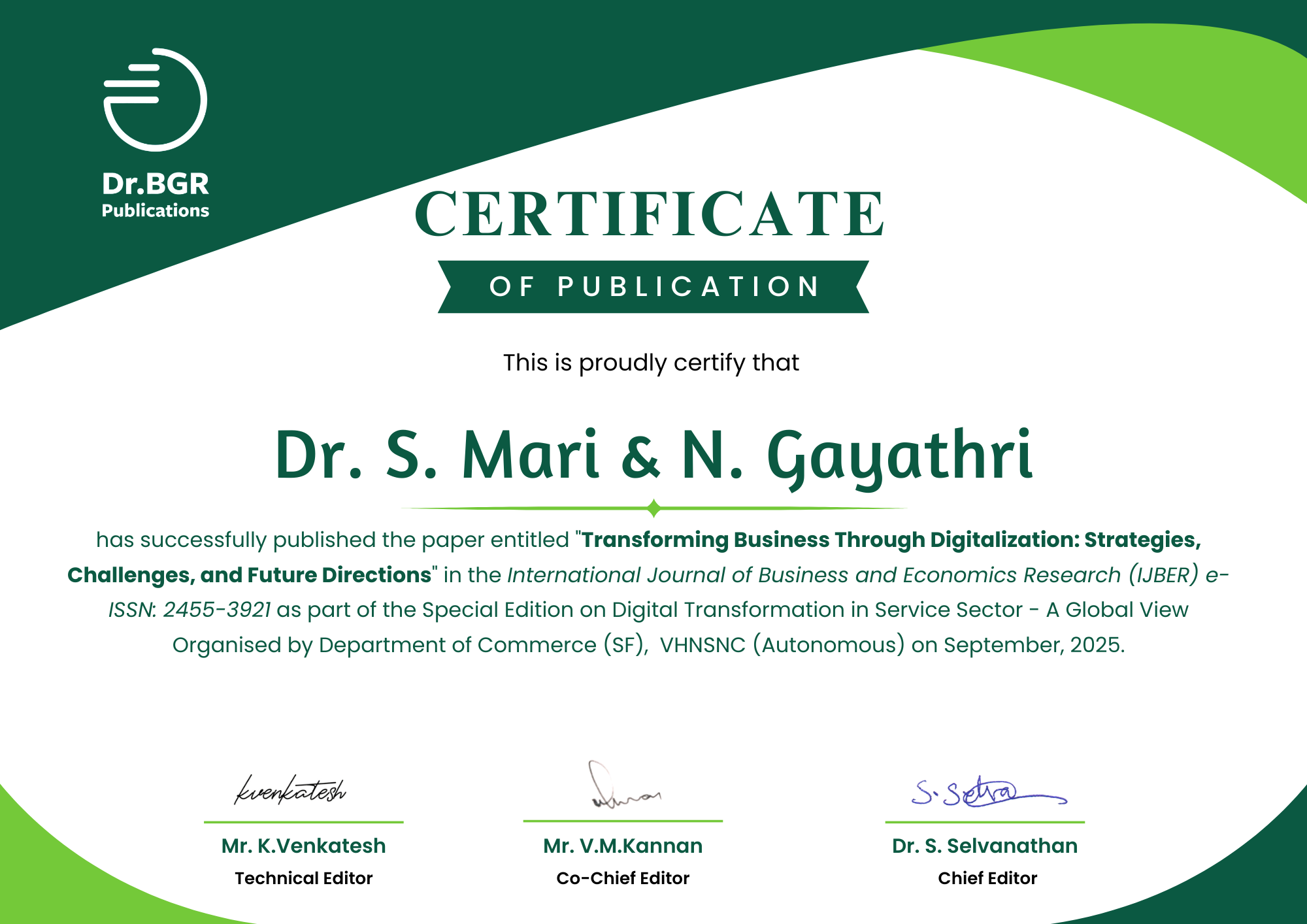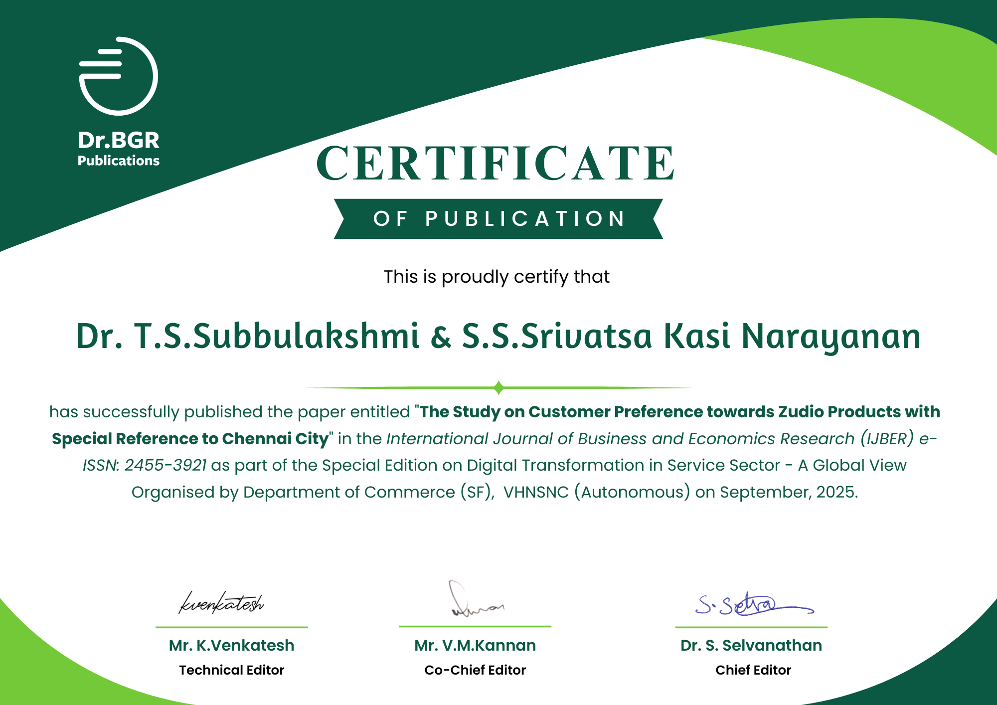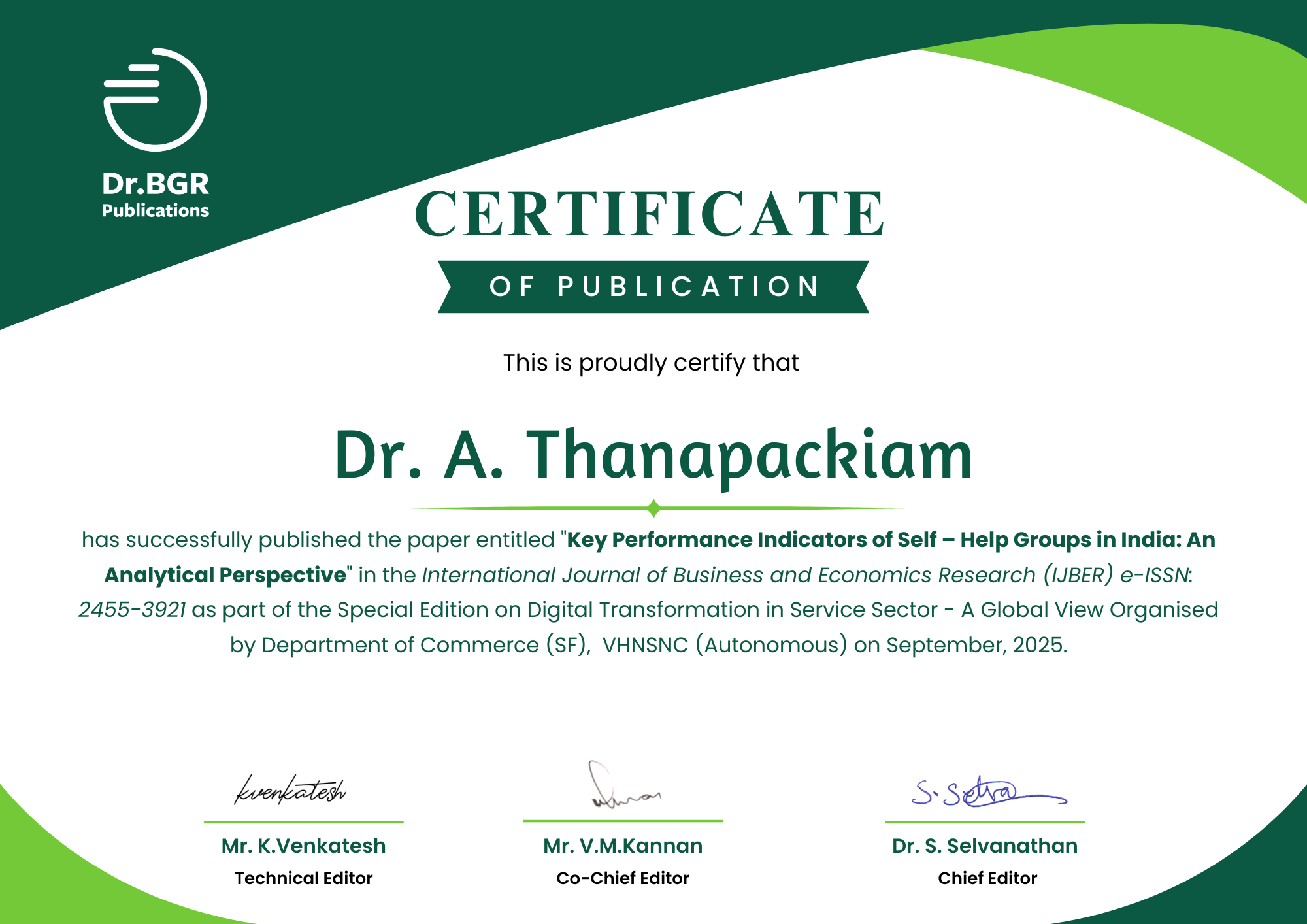Department of Commerce (SF), Virudhunagar Hindu Nadars’ Senthikumara Nadar College (Autonomous), Virudhunagar, Tamil Nadu, India