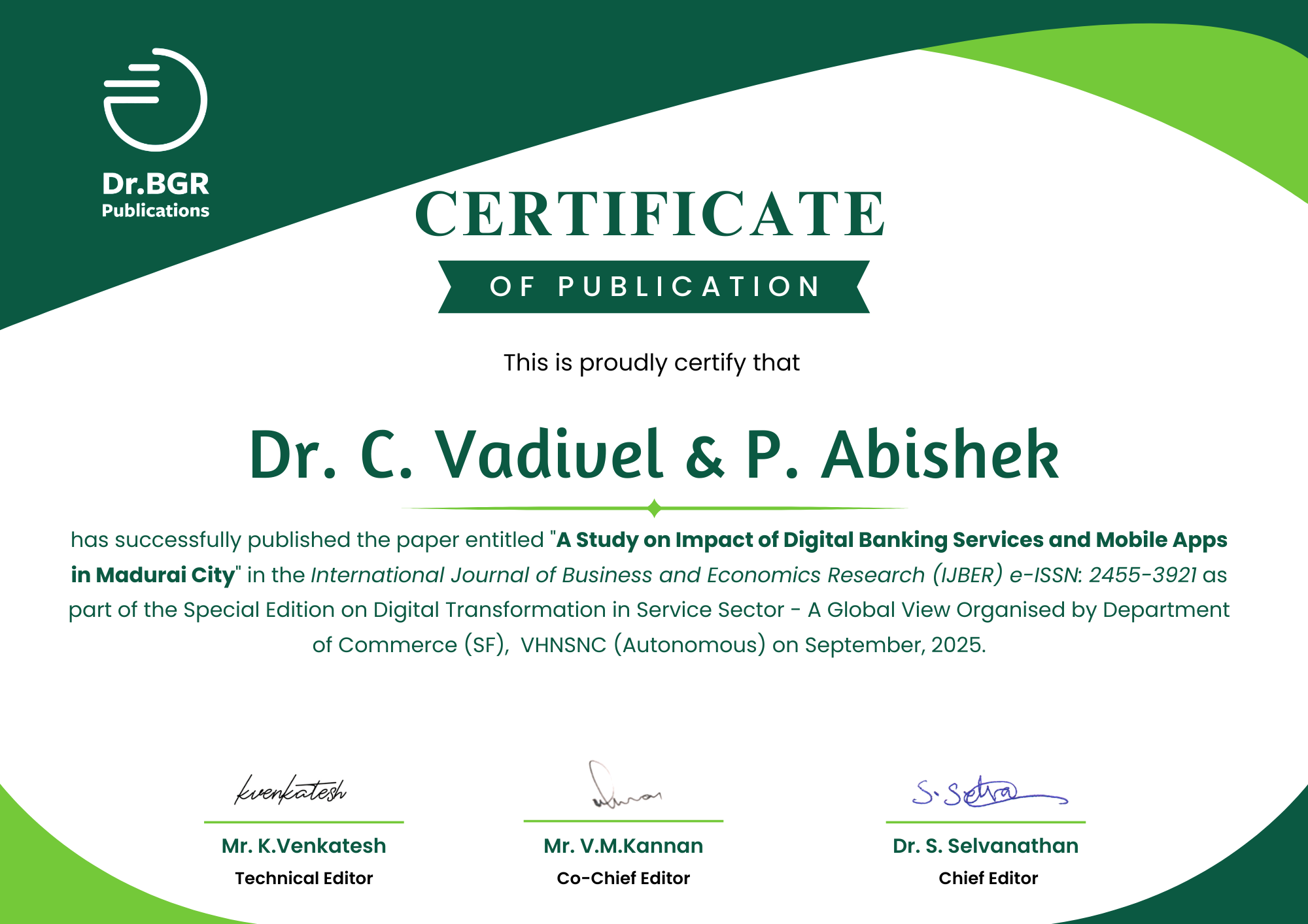 25. | NC 089 | A Study on Impact of Digital Banking Services and Mobile Apps in Madurai City