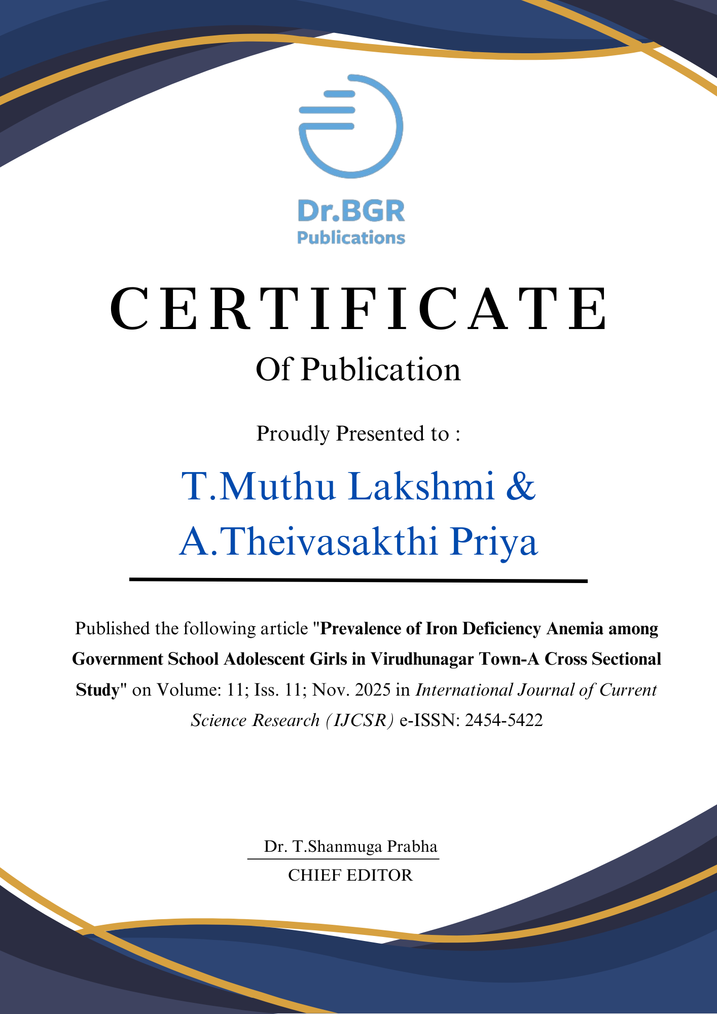 Health status in India can be understood with its historical perspective, health concerns and health infrastructure in pre- independence and post- independence phases and the analysis of effectiveness of health care systems for the different expected beneficiaries of the society. This chapter has been organized keeping these aspects in view. Adolescent is one of the most challenging periods in human development. The relatively uniform growth of childhood is suddenly altered by a rapid increase in the growth rate. The sudden changes create nutritional needs. Adolescent is considered as nutritionally vulnerable period for several reasons. The present study has been undertaken as a study of “Prevalence of Iron Deficiency Anemia among adolescent girls in Virudhunagar town government school girls”